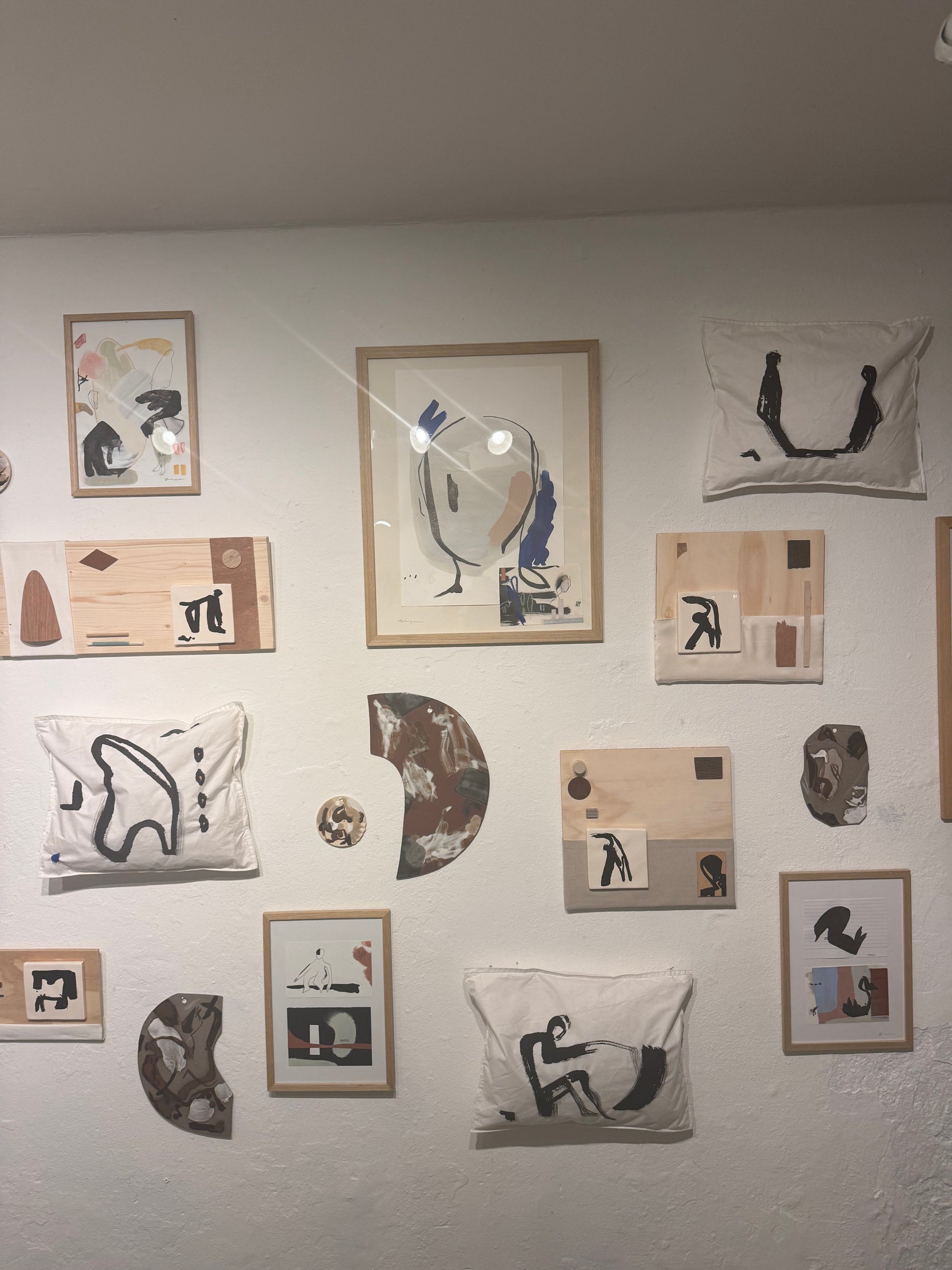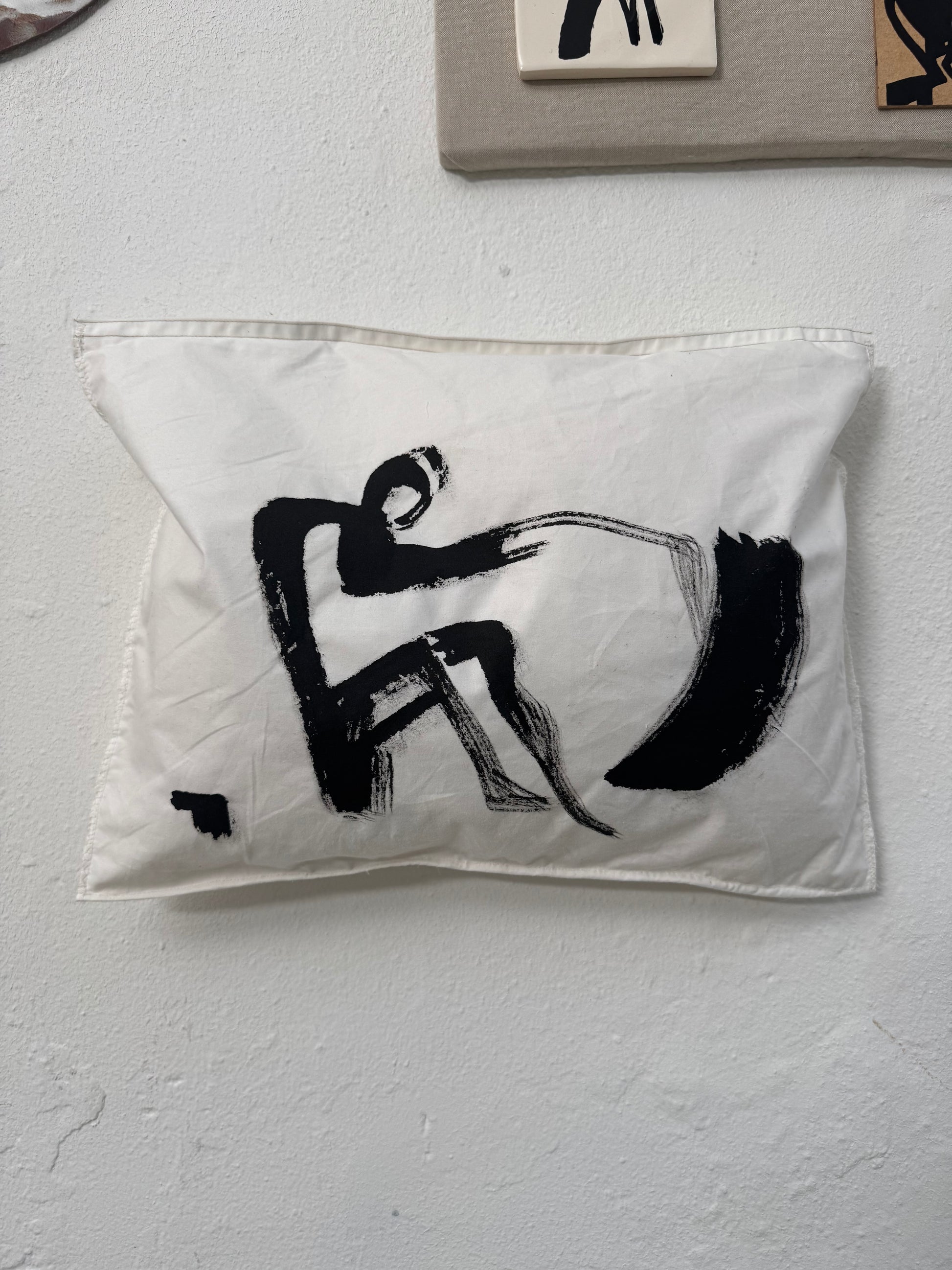 Soft Landing is a one-of-a-kind artwork created from a fragment of a quilt and a down-filled pillow—materials once made for rest, warmth, and protection. Transformed through painting and hand embroidery, the piece carries traces of comfort, memory, and care, reimagined as contemporary art.